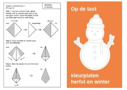 - Origami-reliëfwerken: bij Passend Lezen zijn er instructies in reliëf beschikbaar die het vouwen uitleggen, bijvoorbeeld een kerstster. Bekijk hier het voorbeeld.